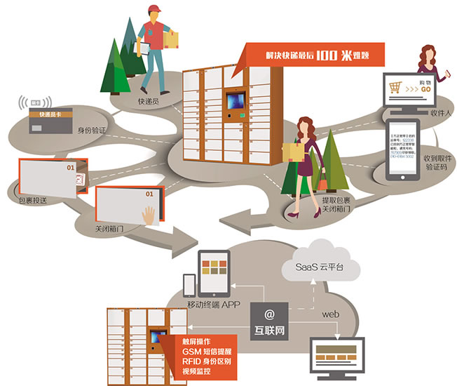 方正智能柜是一個(gè)快遞包裹的代收系統,解決快遞最后“100”米難題,當收件人不方便收取包裹時(shí),快遞員可將包裹投入方正智能柜中,投遞成功后系統會(huì )自動(dòng)給收件人發(fā)送帶有驗證碼及二維碼的短信,收件人可憑驗證碼或二維碼24小時(shí)隨時(shí)取件。方正智能柜的功能既不限于快遞終端,也不限于是網(wǎng)絡(luò )熱點(diǎn),它也可以作為社區便民終端(金融、繳費、洗衣等生活服務(wù)功能),它將來(lái)是實(shí)現智慧社區的一個(gè)入口,是方正科技為實(shí)現智慧社區搭建的一個(gè)開(kāi)放性平臺,是實(shí)現商家到客戶(hù)的有效橋梁!